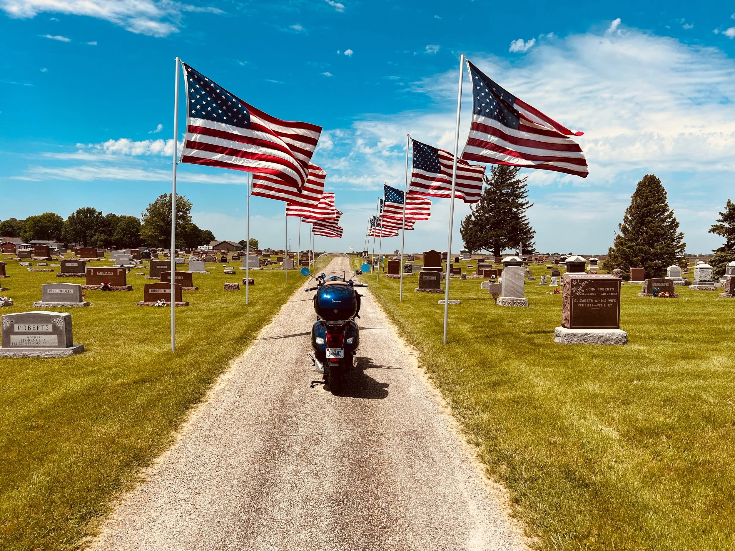 Most of my day was in Iowa. Just like Indiana and Illinois, I was surprised by the enormous farms. However, I saw more rolling green hills and animal pastures in Iowa than I saw in the other two “I” states. I passed through two little towns that were celebrating Memorial Day with ceremonies in the town square. During my ride, I reflected on the women and men who have made the ultimate sacrifice for our country. I am forever grateful to them and their families.